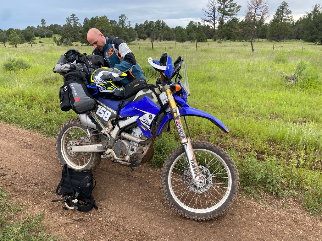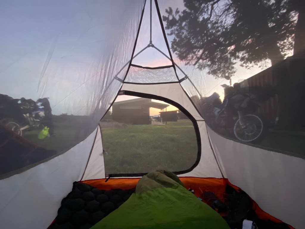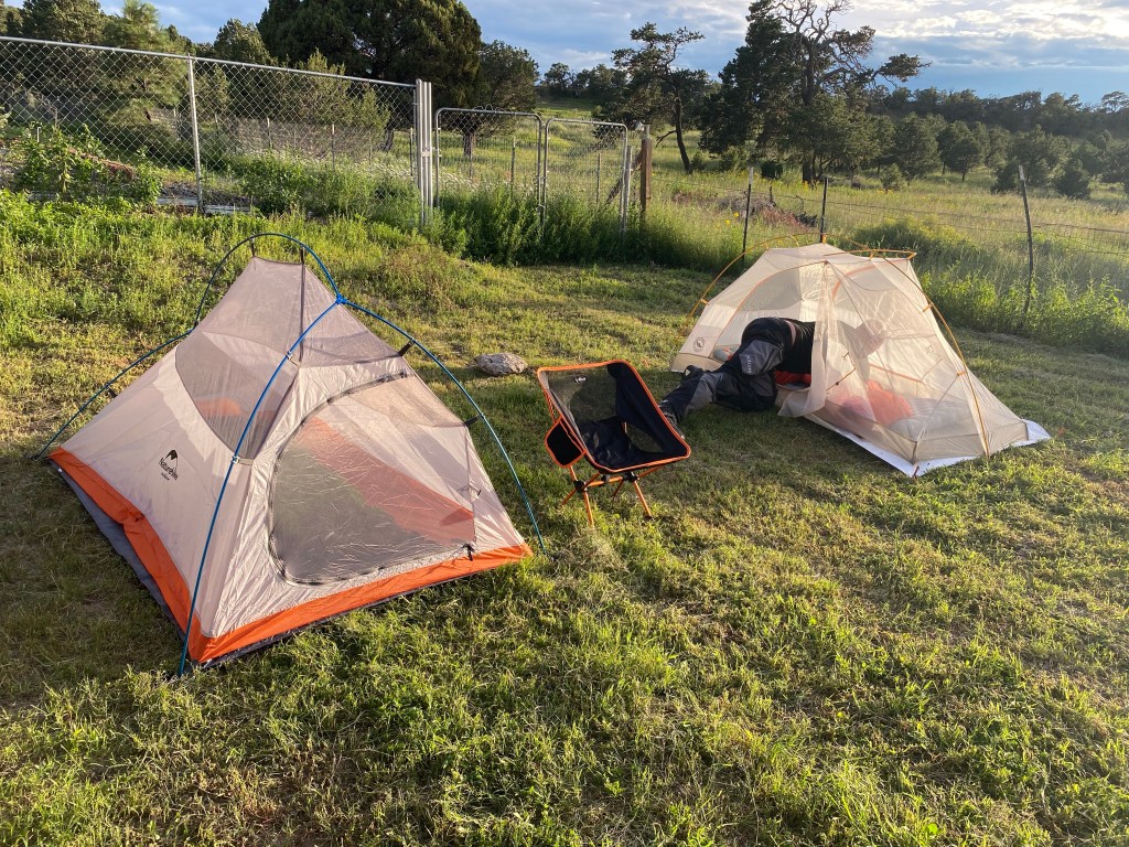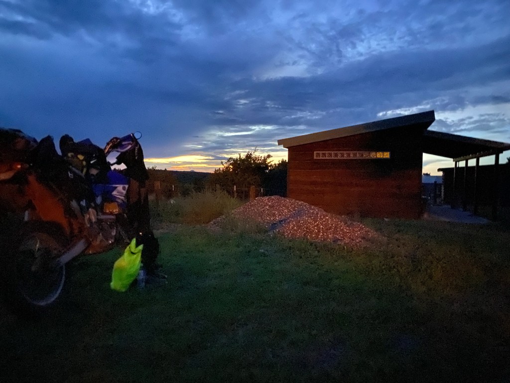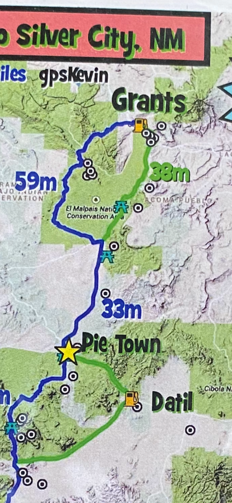 We tried to find a campsite in Datil, NM that had showers but no luck so we rode another 20 miles to Pie Town. Matt found the Pie Town RV Park on his phone so we called ahead. They didn’t have any tent spots so we were told come anyways and setup our tents behind the owner’a house behind a red shipping container. Everything went well until about 11pm. A truck pulled up to the house – guessing the owners and they built a fire, and blasted music until about 4:30 am. This was about 30 yards from the tents. Needless to say we didn’t sleep much. It’s all part of the adventure!