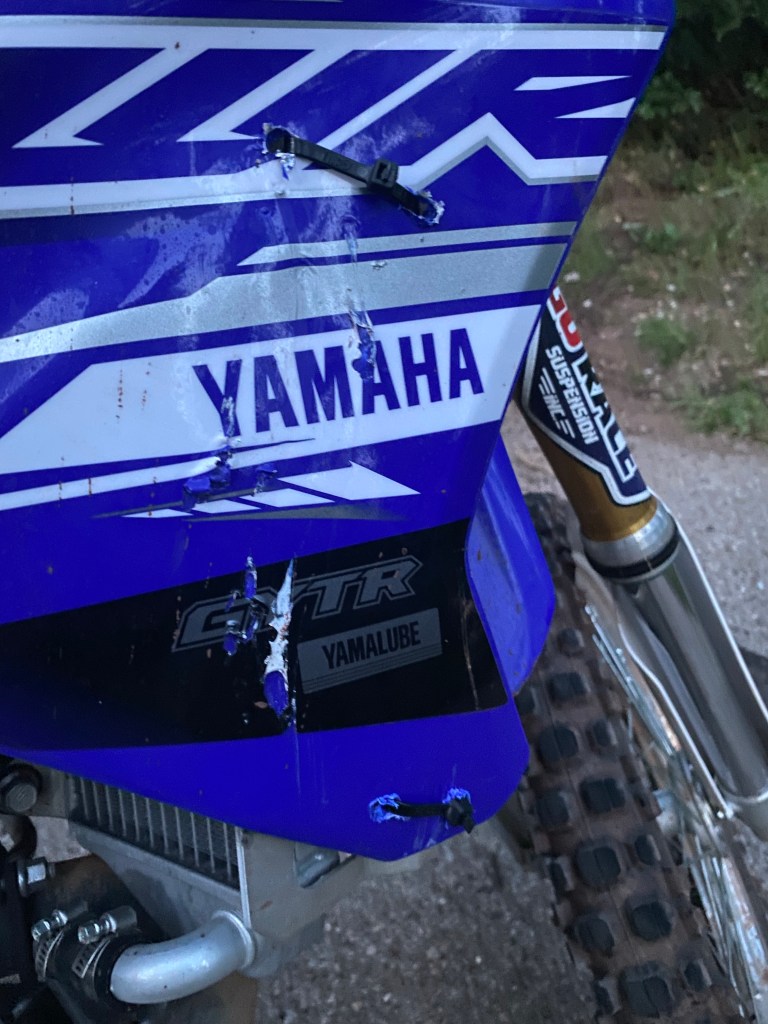 Today was a really great day of riding. We started off by heading back to Grants for gas, water and an air pressure gauge. From there we got on the trails. We had steep rock road mountain passes, single track prairie, long stretches of sand and muddy trails. The highlight of the day was coming out of the mountains back down into the. The views were just amazing in an directions and it appeared we were the only people there. I recorded the entire thing in my GoPro. Once back on the desert floor we eventually stopped by a big rock feature and had lunch and break. There was a 32 mile red section meaning extreme difficulty and we made it through just fine. We stopped in Cuba for gas, food and water. From there we continued on to a camp site. There was a 7 mile red section between Cuba and the camp site. It was absolutely brutal. It was a mountainside ride full of rocks, boulders, massive ruts, steep inclines and nowhere to turn around. The bikes were in 1st gear the entire time and we just went for it. Never seen a trail like that before. I high centered a couple times. We lost a mirror and my bike sustained some battle scars on the right side that had to be fixed with zip ties. Some sections of this hikers probably wouldn’t even go on. Once we finished that section we found an established campsite. The site manager had been up here by himself since May. There were twelve spots and one left so we took it. We walked around the camp last night and there was a group of four people under a tent playing blue grass music. They had their instruments and were playing by lantern light. We stopped and listened for a while. We found some wood and started a small fire. This was the first night we really felt the drop in temperature. It’s 5:32 am and 52 degrees. We have satellite comms, but still no cell service. No idea when I’ll publish these last few posts so I’m saving drafts on my phone and also saving the relive videos. It’s about time to eat, breakdown camp and repack the bikes. Might have to use the grip warmers this morning..