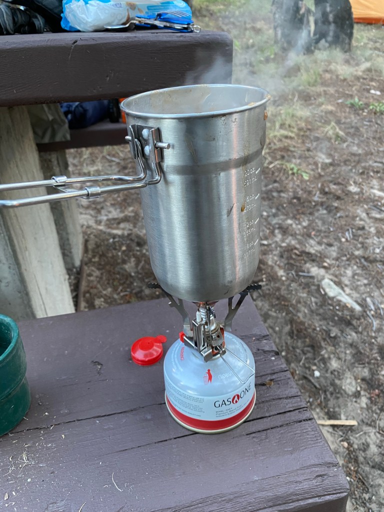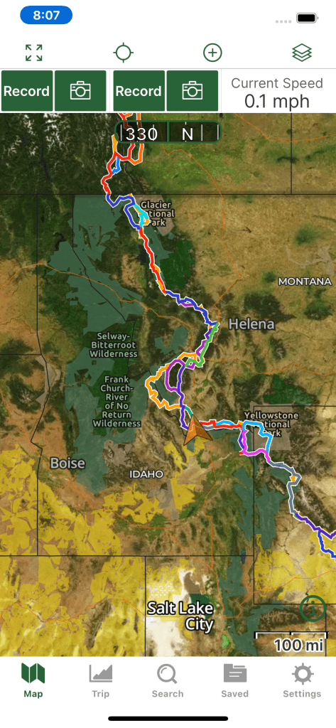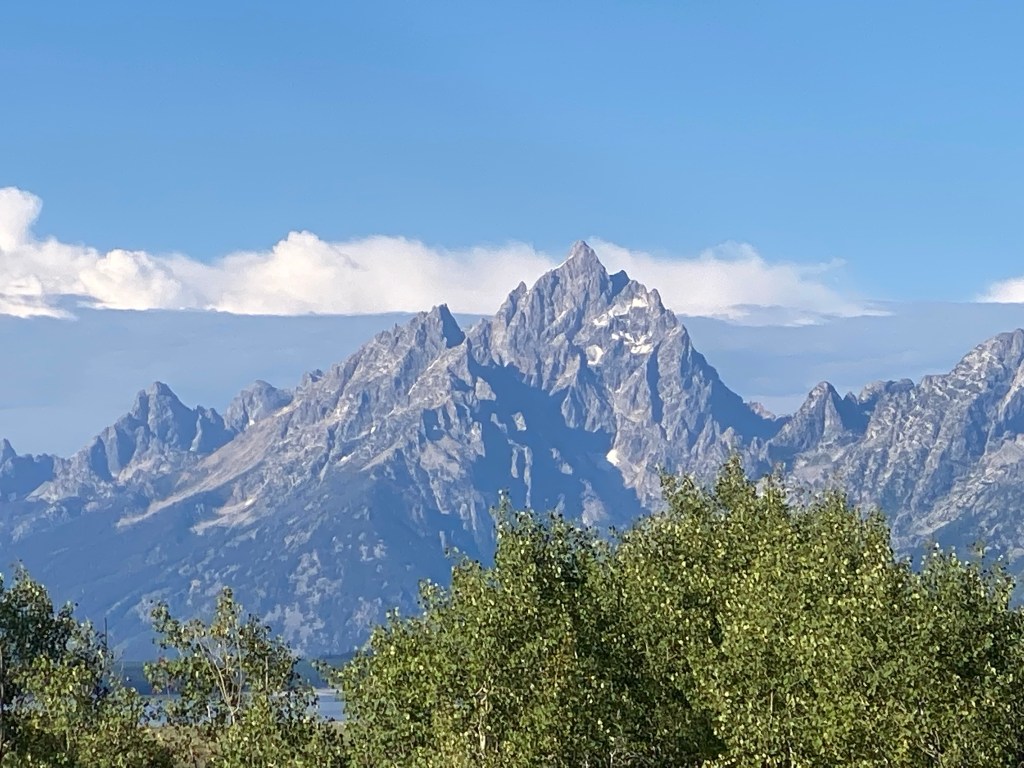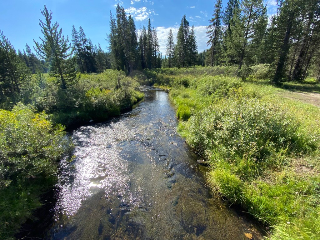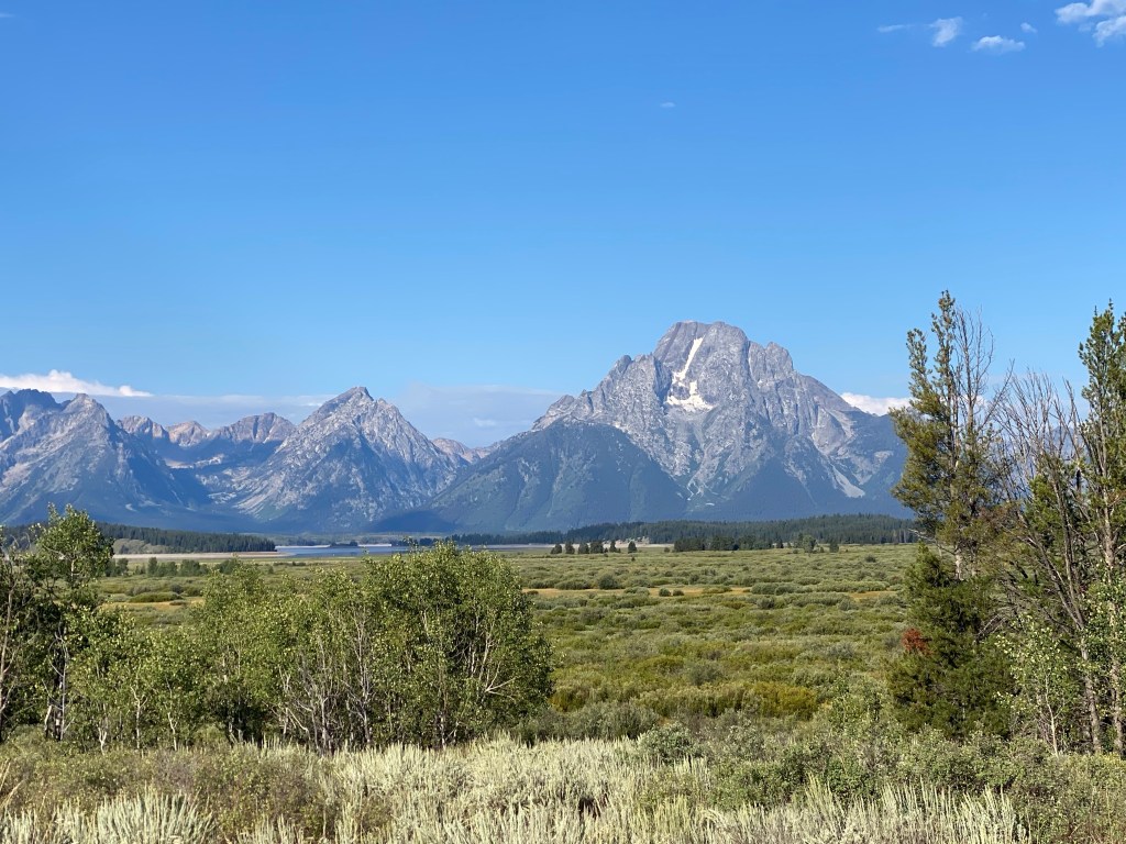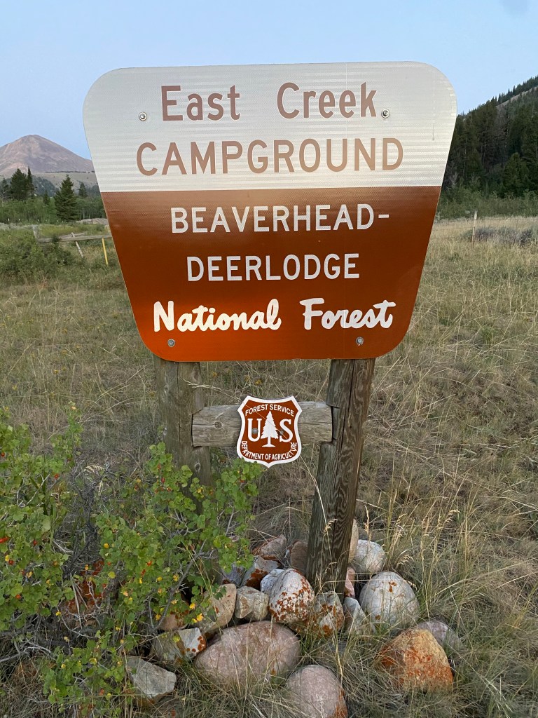 Started the day at the lodge. It was nice to get a shower, meal at the restaurant and a chance to do laundry and repack. We loaded up the bikes, grabbed a coffee and head out. By coincidence, the trail system was right behind the lodge property so it was really easy to get on it. It rained quite a bit during the night and the trails were extremely slippery and muddy. It was the same type of mud that cakes on top the tires and encases everything. It was difficult to keep the bikes upright for a couple miles. We eventually came across a part of the path that was rocky so we were able to get some speed and knock all the mud off the tires. Though we saw them from a distance the day prior, we made our way to Grand Teton National Park. Once inside the park we followed the flow of traffic and ended up at a scenic pull off and took some pics of the mountains. After that we continued on our path which lead us to a gravel/dirt trail system. We continued on this for miles and eventually found ourselves out in the country surrounded by wheat, potato, and hay fields. There was such a drastic change in scenery from the farm community countryside compared to the twisty mountain roads. A lot of it reminded me of SW Wisconsin. Rolling hills, old barns in need of repair and hay everywhere. Next we ended up on the Idaho Scenic Trail System 001. The first couple miles of it ran along side a gorge with really clear/blue water in it. This trail system was about as wide as a large four wheeler/side by side and was LONG. It was loose sand/rock and was whoop after whoop the entire time. Matt compared it to a suspension torture test track. Probably 40 minutes in, Matt noticed fluid coming out of his right fork. This meant there was a failure of the ring or perhaps debris caught up in there breaking the seal. We pulled over and called Travis. He’s the one in VA that built our suspension. He told Matt over the phone how to fix it on the trail so we worked the problem. We had to lay the bike on its side, pull the fork dust cover off, clean all with a rag and then cut a water bottle into a scoop shape then use that to dig the dried dirt out of the fork seals. We did all that and it seemed to work. We diverted to a paved road to give the suspension a little break. We found another gas station, filled up and continued. We hit another part of the gravel trail and out in the middle of nowhere we ran into Gary. He had an older large suv and was pulling a homemade travel trailer. We noticed he was trying to change a blown out tire so we stopped and helped him out. His first spare tire was too big to fit but he had a smaller tire so we mounted it for him and sent him on his way. Visually he looked like a combination of The Prospector from Toy Story, Uncle Jesse from The Dukes of Hazard and Charlie Daniels. After that we continued on for another 40 plus miles on this gravel road and found a campsite by a mountain lake. The site was surrounded by marsh and had zero shade. It was still early in the day so we looked at the gps and found a different site over an hour away. We jumped on the bikes, headed to Lima, MT and found a gas station in town. We filled up and then rode another 20 minutes to the most secluded and tucked away campsite yet. There were 10 spots and we had the place to ourselves. Once we dropped off our gear at the site we took the bikes and went to all the fire pits, strapped all the wood we could find to the bikes and build a large fire after we setup our camp. After that we had dinner, hung the bear bag in the front of the park close to the entrance and went to bed.