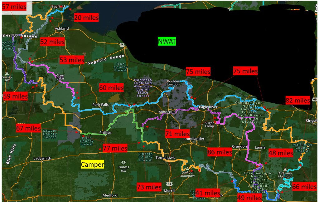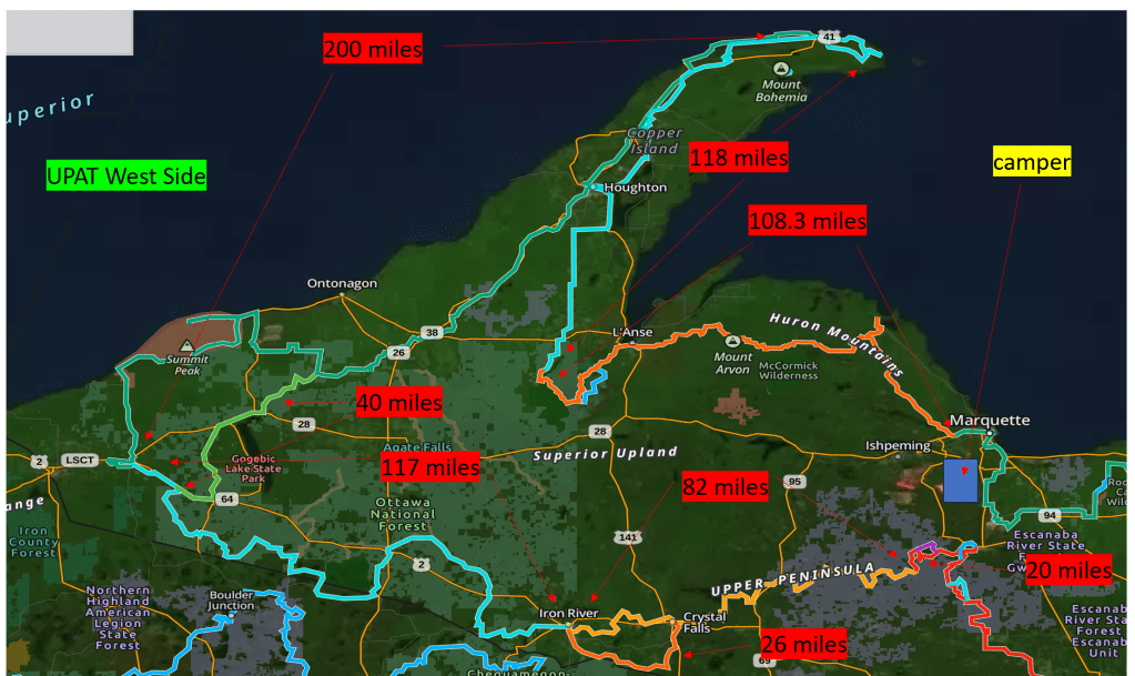 September: UPAT/NWAT Maps With Mileage: 7-8 Long Days for All. 5 bikes, 2 Travel Trailers, Spare Tubes and Some Bear Spray