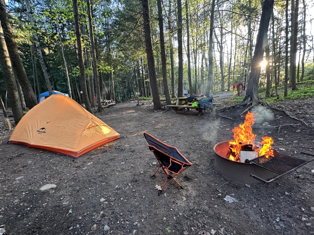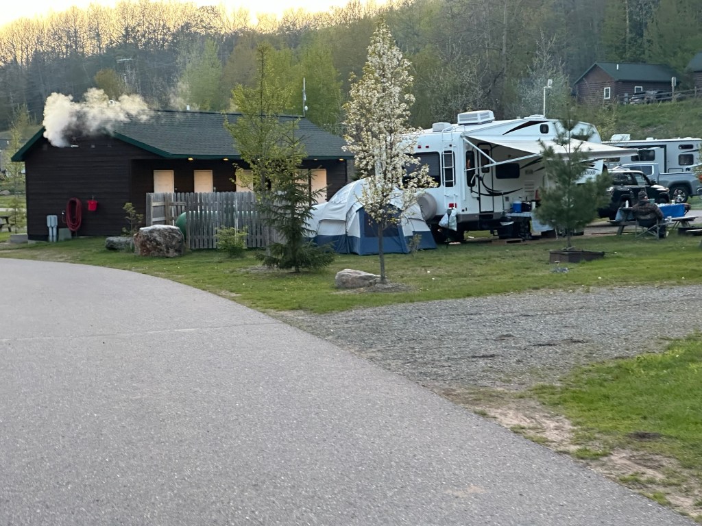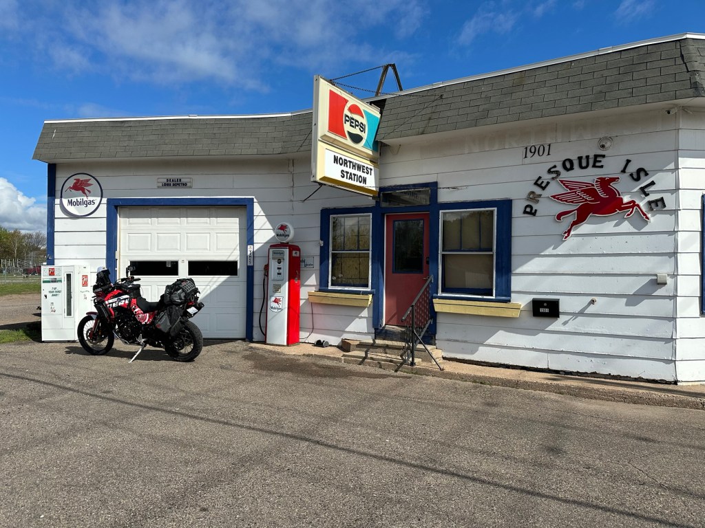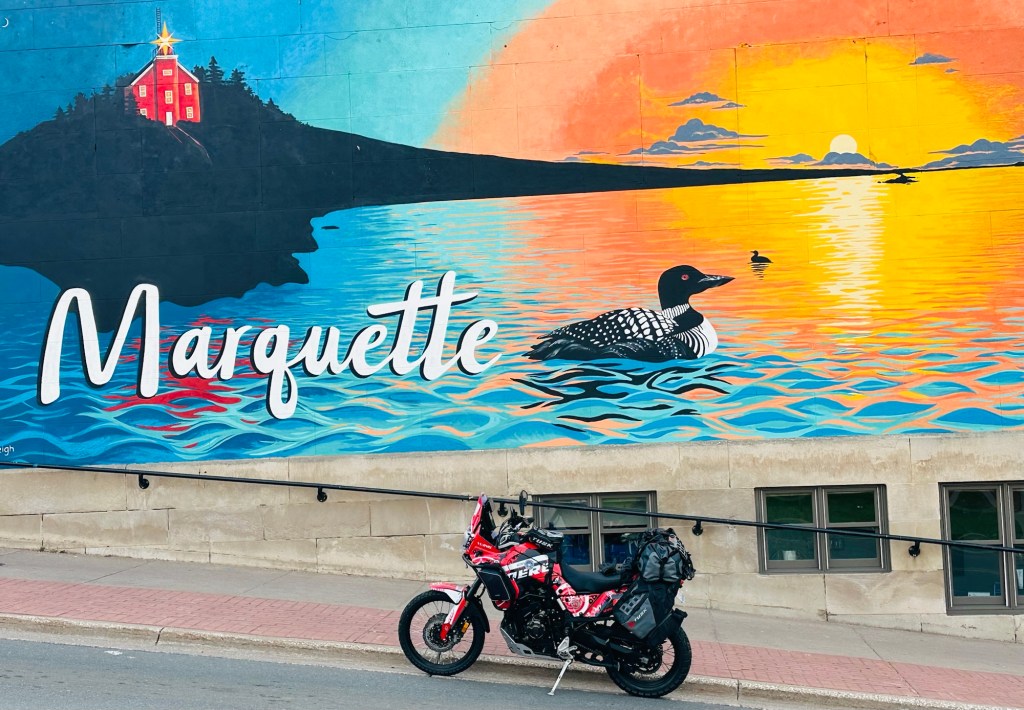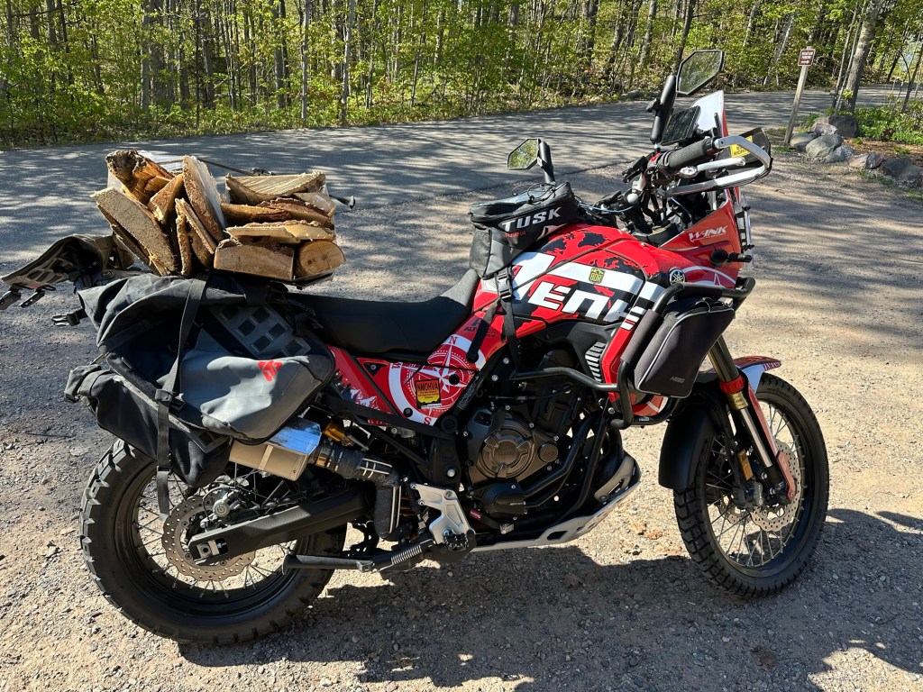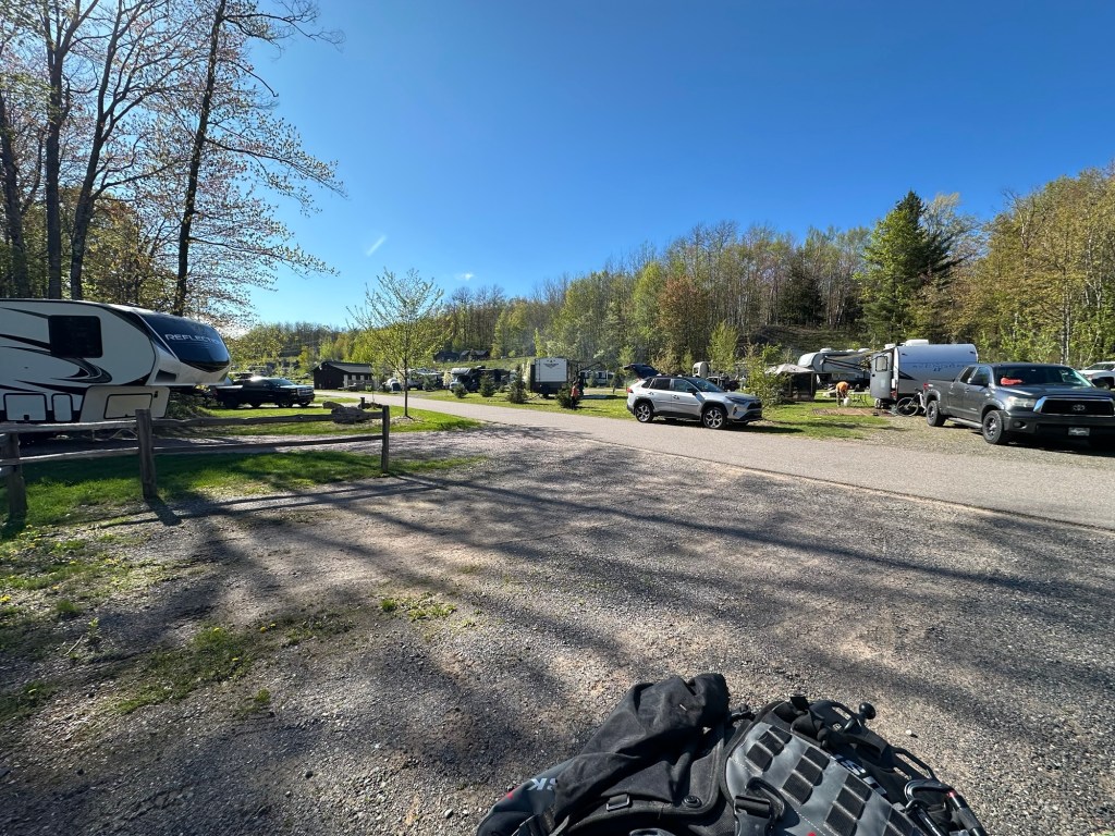 I didn’t exactly have plans this year for Memorial Day weekend compared to years past, so I made my own and took off on the bike. Friday afternoon for no particular reason I made the decision to go motocamping up in the MI UP the following morning. Granted, it’s the same area the five of us will base out of this coming September for the MI UP and Northern WI trip, but it was more aligned with me just getting out and about for a day or so in an area I hadn’t been to since I was a little kid. Friday after work I called the Rippling River Resort and reserved a primitive tent spot at their park. The website looked great so thought I’d give it a try. Friday evening I pulled the bike panniers out of the shed, cleaned off the dirt leftover from the NM BDR from last September, and then installed it all on the bike. I have a little room down in my basement dedicated to bike trip planning and moto camping gear so I went down there, did a little in-house shopping and collected the basics – tent, 15 degree North Face bag, winter riding gloves, beanie, air mattress, stove, chair, air compressor, tubes, tool kit, zip ties, duct tape, water/fuel bottle, and a few other odds and ends. Saturday morning I layered up with thermals, my heavy riding pants/jacket and set off. The GPS shot me up towards Madison, over to Appleton, along Lake Michigan then up to the Marquette, MI- UP area. It was mid 50s, cloudy and actually a great ride. I had just enough layers on to where I was sweating or frozen. I’m all about podcasts when riding so I had Theo Von on for a few hours then switched to some others. I arrived to the campsite around 3:30, signed in and went and found my tent spot. I setup, changed, took a few pics and then it was time to go get firewood from the shed up by the office. They didn’t have a delivery cart like a lot of places so I strapped two bundles to the back of my bike and brought them down. This place had a pool, hot tub, bar, and really nice spots for travel trailers. Back behind the bar and down the stairs there was a little open brick pizza oven and next to that a massive rock fire pit, wooden chairs and a bunch of people. This was all on a riverbank and probably one of the nicest sites I’ve ever been to. A ton of planning went into setting this facility up – highly recommend! Once all settled in, I made my way to the bar/fire pit, ordered a pizza and an old fashioned and hung out with the others for a couple hours. A few were local, but others were from Madison, Minneapolis, Detroit, and some other places. One of the bartenders was originally from the Rockford area, but moved up there after her first vacation years ago. I can see why, it’s just an amazing place. After hanging with the others for a while, I made my way back to camp, lit the fire and relaxed. There were four other tent sites down by me and they were all mountain bike people. The fire eventually went out and it was time to crash. I think it got down to 38/39 degrees that night. My North Face bag was perfect so no complaints there. The next morning I got up at 4:45 (no alarm needed-just wired that way), made some coffee, and made my way down to the shower building. I walked by at least 15 big 5th wheels and travel trailers. The entire area was silent besides the hum of the trailer heaters. After all that I broke down camp and was out of there before any of my tent neighbors were even awake. After I left the campground I headed 10 minutes North up to Marquette, MI – UP. A few days prior I had reached out to a guy I grew up with in IL that lived in the area and we met at a place called Donckers for breakfast. Prior to breakfast, the last time I had seen Kurt was probably in 93. From there I cruised around town, and followed the Lake Superior shoreline out of town for a bit. I snapped a bunch of pics, topped off on gas and headed South. All in all it was a great trip. I traveled three states in 33 hours and it was somewhere around 780 miles. The next adventure starts this Saturday…. More to come!